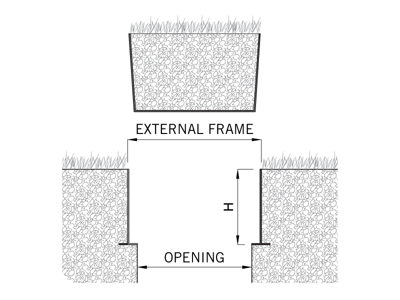 Code RAL 6005 | Code HOT-DIP GALVANIZED | Frame size (mm) | Clear opening (mm) | Weight (kg) |