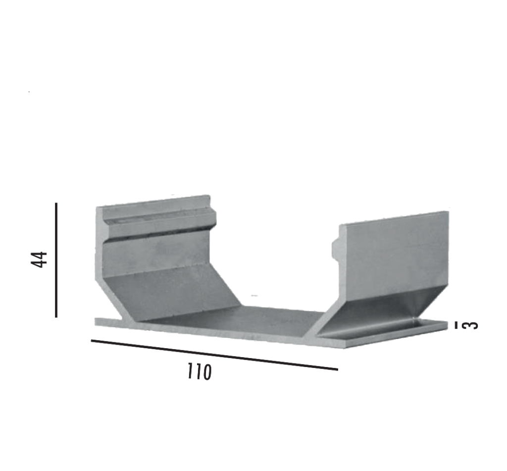 • Design del profilo in alluminio estruso con fessure di ingresso longitudinali continue 10x25mm.